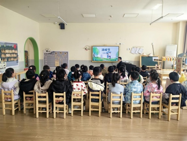 4月2日,总园和万和园开展了清明节主题教育活动,活动伊始,各班老师播放《清明由来》动画,通过动画小剧场讲述寒食节与春耕的故事,让幼儿初感知清明文化 。借助青团、风筝、柳枝、菊花等图片,通过习俗问答互动,引导幼儿了解清明节的传统习俗文化。