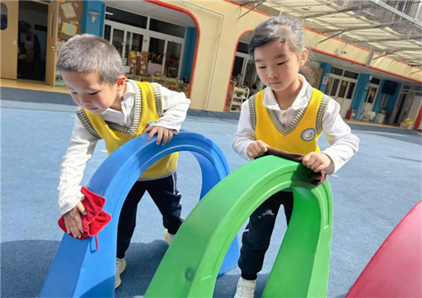 大班的小朋友们齐心协力,对园内操场、玩具设施等进行全面清扫。“老师,我把玩具擦干净啦!”孩子们热情高涨,纷纷撸起袖子认真打扫。楼梯间、轮胎上、种植区,到处都能看到孩子们认真清扫的身影。