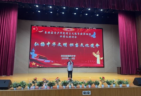 此次演讲会不仅为学生们提供了一个展示自我的平台,也进一步推动了学校爱国主义教育和读书活动的深入开展,让学生们在阅读和演讲中汲取精神力量,增强文化自信,激励他们努力学习,为传承和弘扬中华文明贡献自己的力量。未来,来安县第四中学还将持续开展各类丰富多彩的文化活动营造浓厚的校园文化氛围。(文图/吴希平)