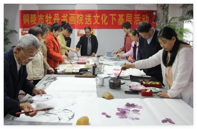 弘扬中华优秀传统文化,推动基层文化建设。近日,铜陵市铜官区文化馆联手市牡丹书画院,开展以“翰墨润铜都•丹青绘新篇”为主题的文化交流活动,通过现场艺术创作与书画作品展览,为市民群众送上一场精彩纷呈的文化盛宴。
