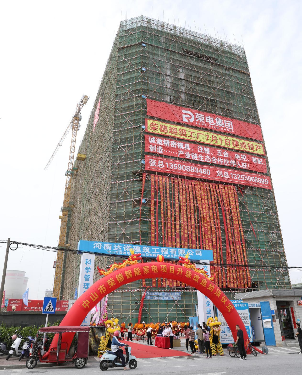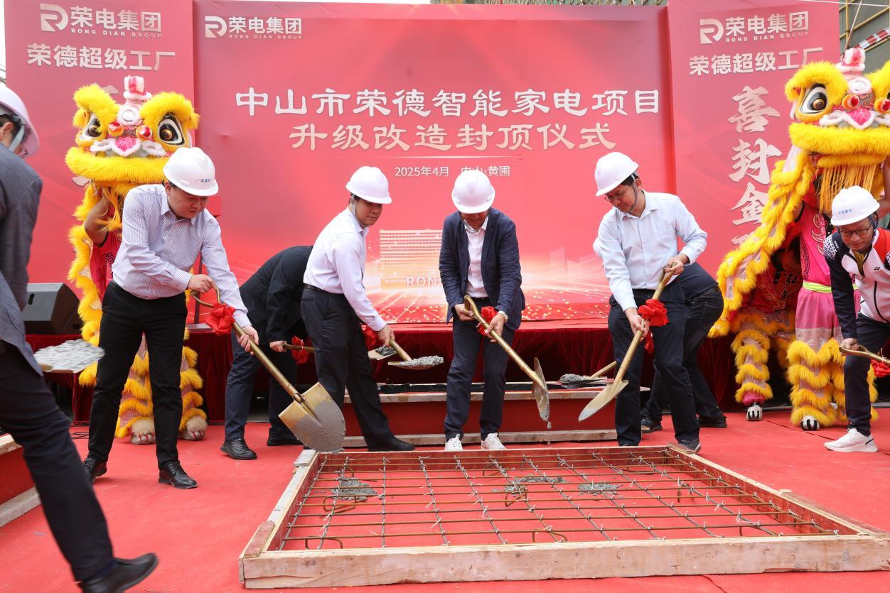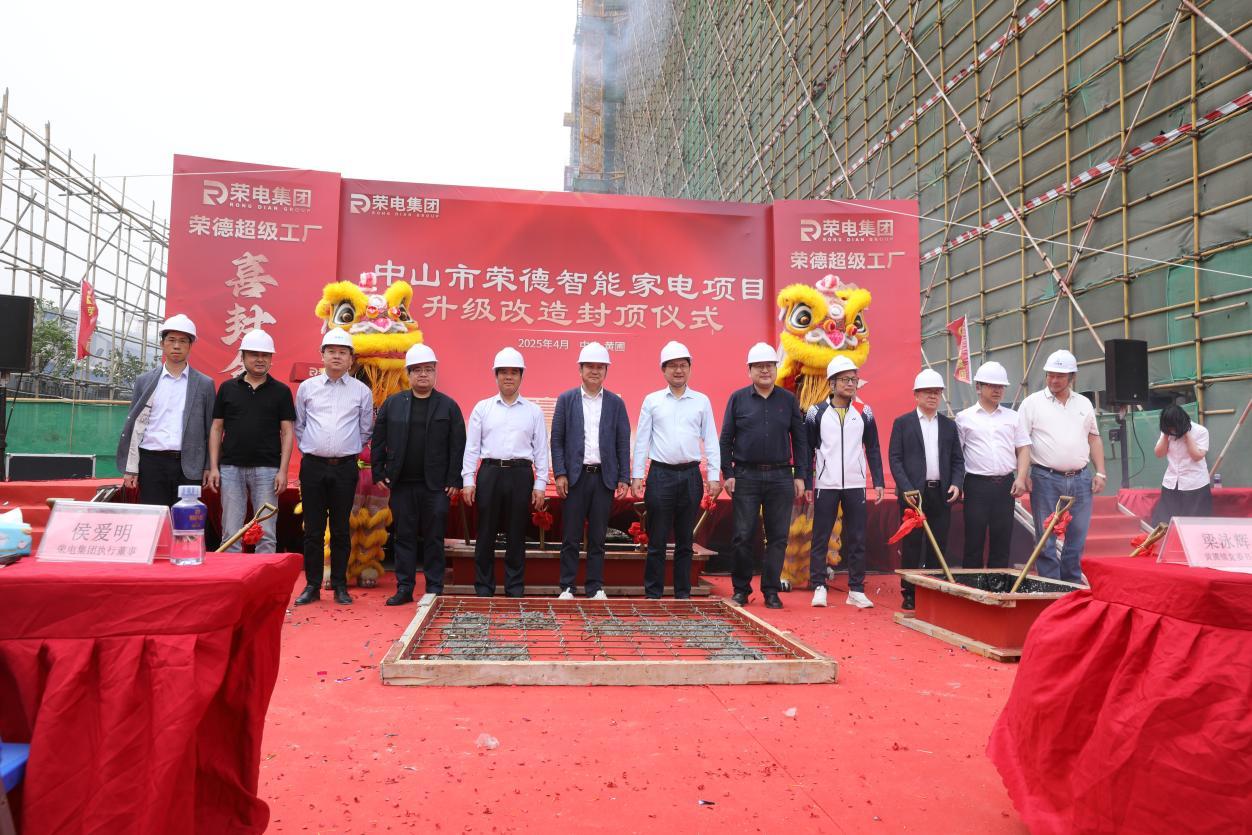 2025年4月13日,荣电集团•荣德电器“超级工厂”项目——中山市荣德智能家电项目封顶仪式圆满举行。中山黄圃镇党委书记梁泳辉、镇长唐国伟、副镇长慎少辉、 副镇长黄炳潮、荣电集团执行董事侯爱明,荣越智能科技(广州)有限公司总经理邓铭亮、荣德电器总经理张志辉、广东万兴恒泰总经理朱东松、河南达诺总经理申天中、中国检科院粤港澳大湾区研究院执行院长王云帆以及合作伙伴嘉宾等一行莅临封顶仪式现场。
