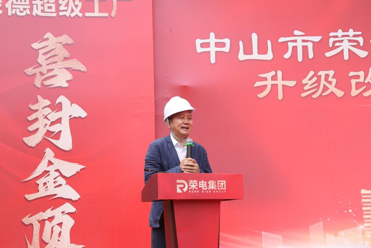 各政府领导、荣电集团执行董事长侯爱明与企业高层领导及其他单位代表,共同完成了荣德电器超级工厂智能家电升级改造项目封顶典礼。