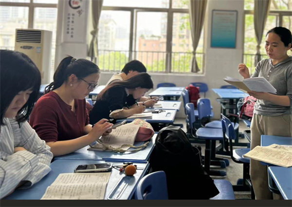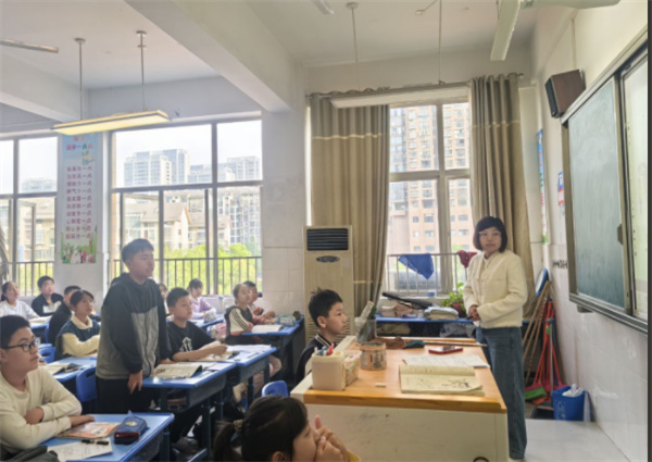 最后,副校长王少群对本次活动进行了点评。她肯定了两节课例的教学亮点以及六年级全体语文老师的共同努力,同时也和所有参与教研的老师们共同探讨思考:小学高段文言文和低段在教学侧重点上有什么不同?在AI背景下,如何让AI高效地服务于我们的教学?如何巧妙利用?文言文教学怎样渗透文化自信?