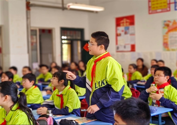 宛群老师执教的《两小儿辩日》,关联本单元的语文要素——体会文章是怎样用具体事例说明观点的,让“辩”字贯穿始终,由浅入深,引领学生走入文本、分析文本,引导学生在朗读中感悟文本的内涵,领会《两小儿辩日》中蕴藏的智慧的火花。宛老师循循善诱的教学方法,唤醒了学生独立思考的意识,锤炼了学生逻辑表达的能力。学生主体性和参与度很高,整堂课以学生为中心,给予学生充足的思考、讨论时间。小组合作探究环节,学生们热烈交流,积极发表观点,思维碰撞出火花。
