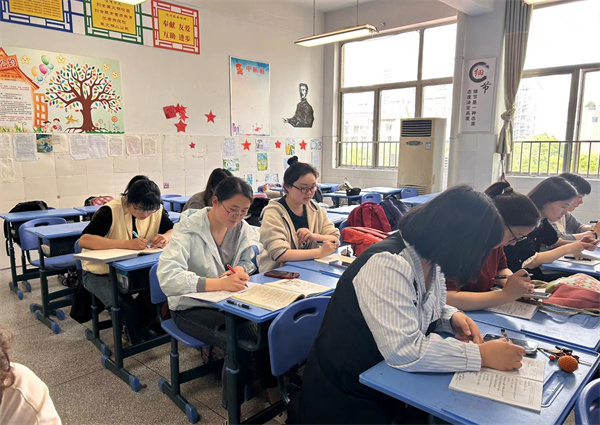 说课后,语文教研组全体教师在教研组长王云的组织下,进行了以“深耕细研,共评共思”为主题的评课活动。大家坐在一起评课议课,老师们畅所欲言,既肯定了教学过程中的亮点,又指出了个别环节的不足,共研教学策略,共话课堂实效。