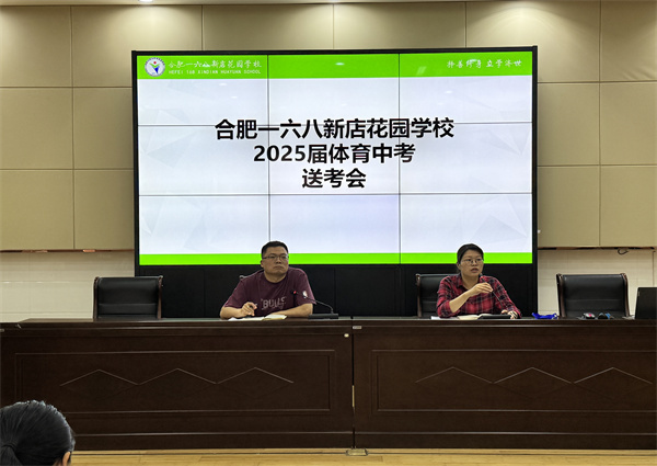 为确保每一位学子体育中考顺利,出色发挥,4月11日上午,合肥一六八新店花园学校召开了2025年中考体育送考会,会议由九年级组长张杰主持,副校长张宏军、教务处殷晓梅主任及九年级全体教师参加本次会议。