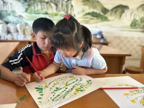 进入校园后,学校的教师带领孩子们参观了新朋友们的班级。并体验了特殊教育课堂。随后在志愿者教师的组织下,新安幼教集团的孩子们与特殊学校的学生分组合作,一起游戏、一起创作。尽管沟通存在一定障碍,但孩子们通过画笔、手势和笑容进行交流,一幅幅充满童趣与想象力的画作在他们的笔下诞生,每一笔都描绘出孩子们纯真的心灵和对彼此的友好。孩子们相处融洽,周围洋溢着欢乐的气息。