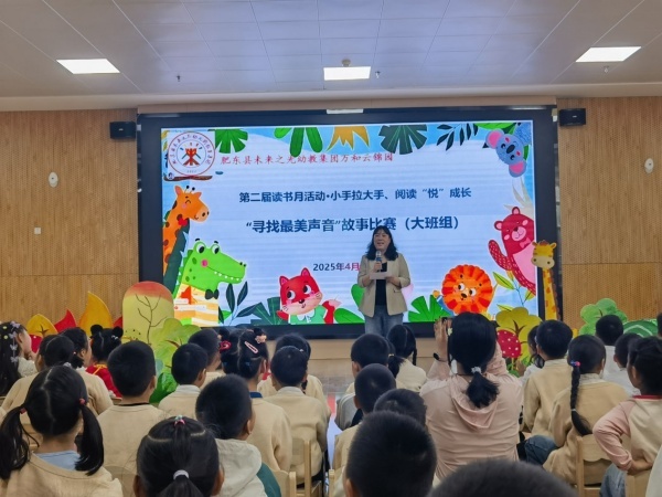 在4月23日世界读书日到来之际,为激发幼儿的语言表达能力和想象力,为小朋友提供一个展现自我的舞台。2025年4月15日上午,肥东县未来之光幼教集团万和云锦园大班组在二楼多功能厅开展了一场“寻找最美声音”幼儿讲故事比赛活动。