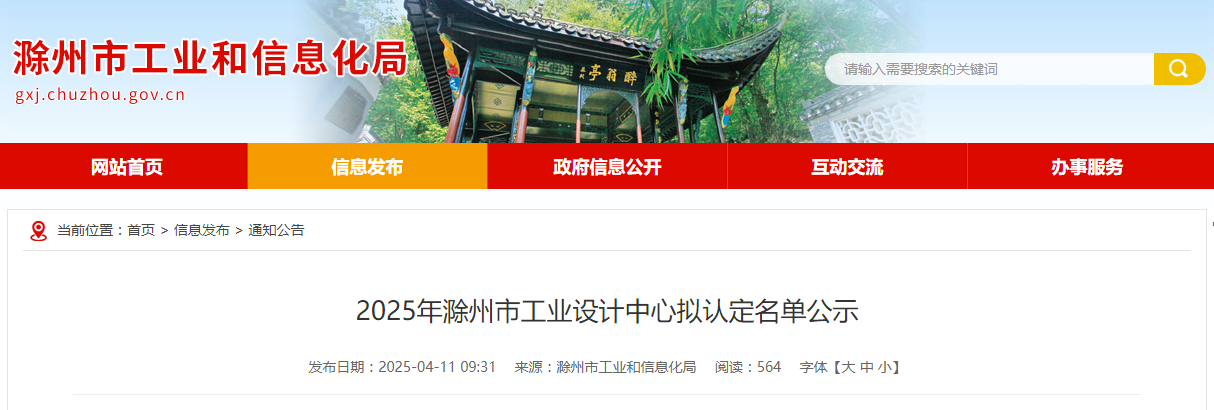近日,滁州市工业和信息化厅发布《2025年滁州市工业设计中心拟认定名单公示》。