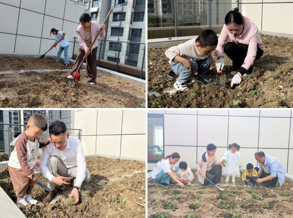 活动尾声,孩子们在老师和家长的指导下,轻轻将种子埋进土里,覆土、浇水,动作轻柔得像在呵护一个秘密。“它会比我还高吗?”“什么时候开花呀?”充满童真的问题里藏着对生命的期待。当最后一粒种子入土,春天的希望也悄然扎根在每一个小小的心田里。