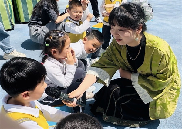 美诗美词撞进春风,一场妙趣横生的“古诗接龙”正在“芳草诗会”现场欢乐上演。孩子们手持话筒,伴着春风送来的花香朗诵着一首首经典诗词,共赏春日里的“碧玉妆成一树高”,共听花园里的“自在娇莺恰恰啼”,把“诗词”搬进大自然,让诗词之美在春日的微风中飘散。