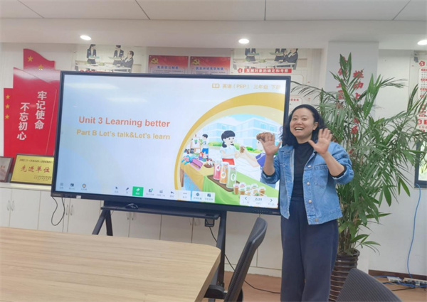 展示课筹备期间,该校英语教研组组建磨课团队,紧扣新课标要求,结合三年级学生认知特点,对教材单元主题进行深度挖掘。主备教师孙秀琳在团队支持下,先后经历4轮试上,从语言节奏把控到活动环节衔接,从板书动态生成到多媒体资源的精准嵌入,每一处细节都凝聚着集体的智慧。