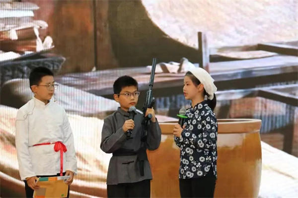 六年级的展演同样震撼人心。《中华少年郎》以磅礴气势诵出少年意气,尽显华夏儿女的豪情壮志;《穿越时空的对话》创新采用古今对答形式,演绎传统与现代的奇妙碰撞;《红色基因代代传》以激昂的语调、炽热的情感,回溯峥嵘岁月,将革命先辈的精神火种传递给新时代少年,充分彰显出少年们坚定的文化自信与使命担当。