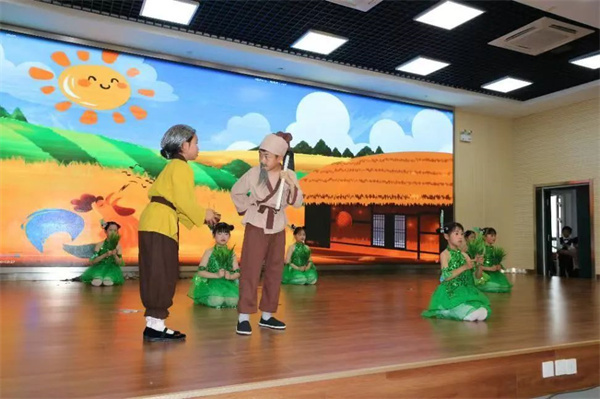 三年级萌娃聚焦传统故事,带来《揠苗助长》《新编司马光砸缸》《狼来了》等创意改编剧目。他们用夸张诙谐的肢体语言、童趣盎然的台词演绎,将深刻的人生哲理融入轻松幽默的表演中,引得观众欢笑与思考并存。