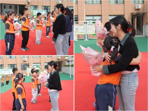 温暖与感动交织,爱意在校园中肆意流淌。孩子们将鲜花郑重地递到家长手中,用稚嫩的声音诉说感恩:“谢谢您的陪伴与付出!”随后,一个温暖的拥抱,传递着无声的爱与成长的力量。