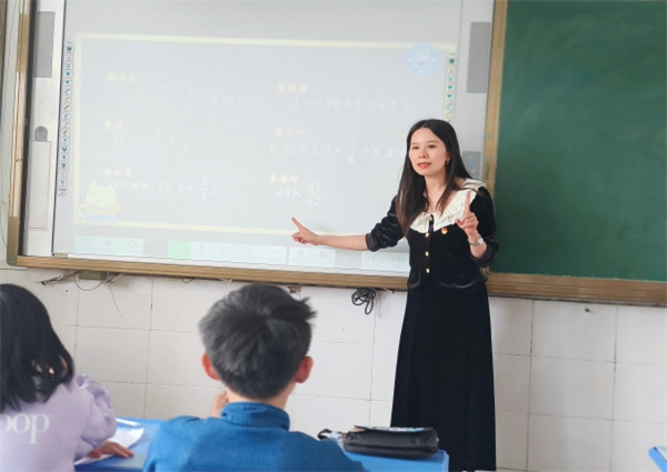 在六年级《乘法分配律》复习课上,李晓芬老师以“4×9+6×9=(4+6)×9”为切入点,引导学生自主探究乘法分配律的合理性。在交流反馈环节,学生们从多个维度展开探讨:通过“算一算”验证;结合算式意义剖析;借助求宽相等的两个长方形面积、点子图等直观模型,将抽象的数学规律转化为具体的图形语言,实现数形结合,深化对乘法分配律的理解。随后,学生在完成相关题目训练后,对题型进行分类。在不同类型题目的对比分析中,总结归纳共同特征,体会深度理解与对比归纳的重要性。课堂尾声,老师希望同学们在今后的学习与生活中,都能保持这节课的探究热情,以积极进取的心态和智慧的方法应对各类挑战。
