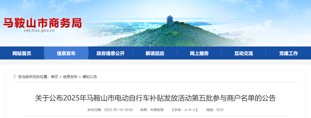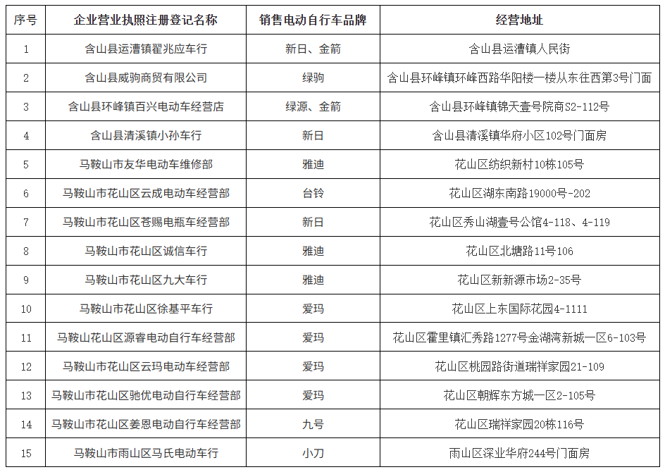 根据《2025年安徽省电动自行车以旧换新补贴实施细则》文件规定,现公布第五批参与商户名单如下: