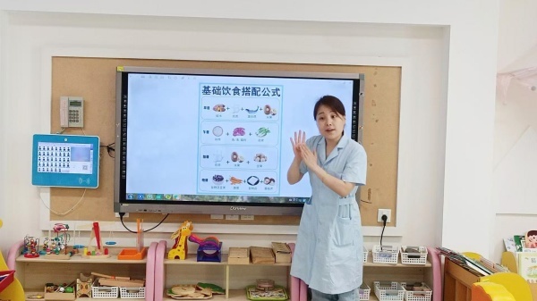 园所通过电子屏循环播放以及张贴海报等形式向家长宣传营养知识,促进家园共育。