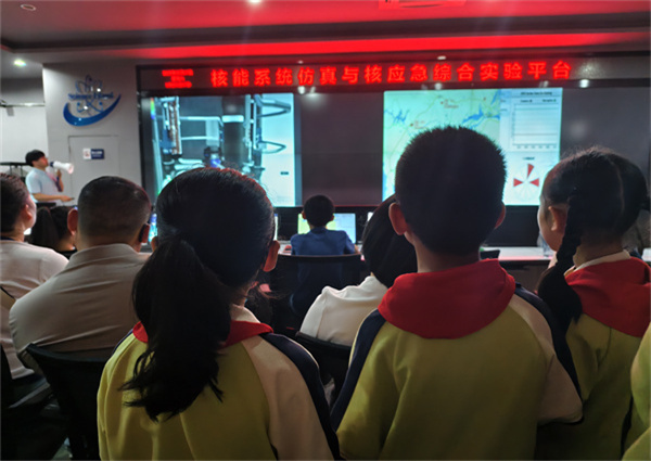 队员们首先来到核能安全技术研究所,通过专题讲座了解了核能系统仿真与核应急综合实验平台的相关知识,深入了解了我国核能安全技术的创新成果与各种应用场景。主讲专家结合三维动态模型,生动演示了各种智能调控系统,进一步加深了队员们对核能安全性的科学认知,让队员们叹为观止。