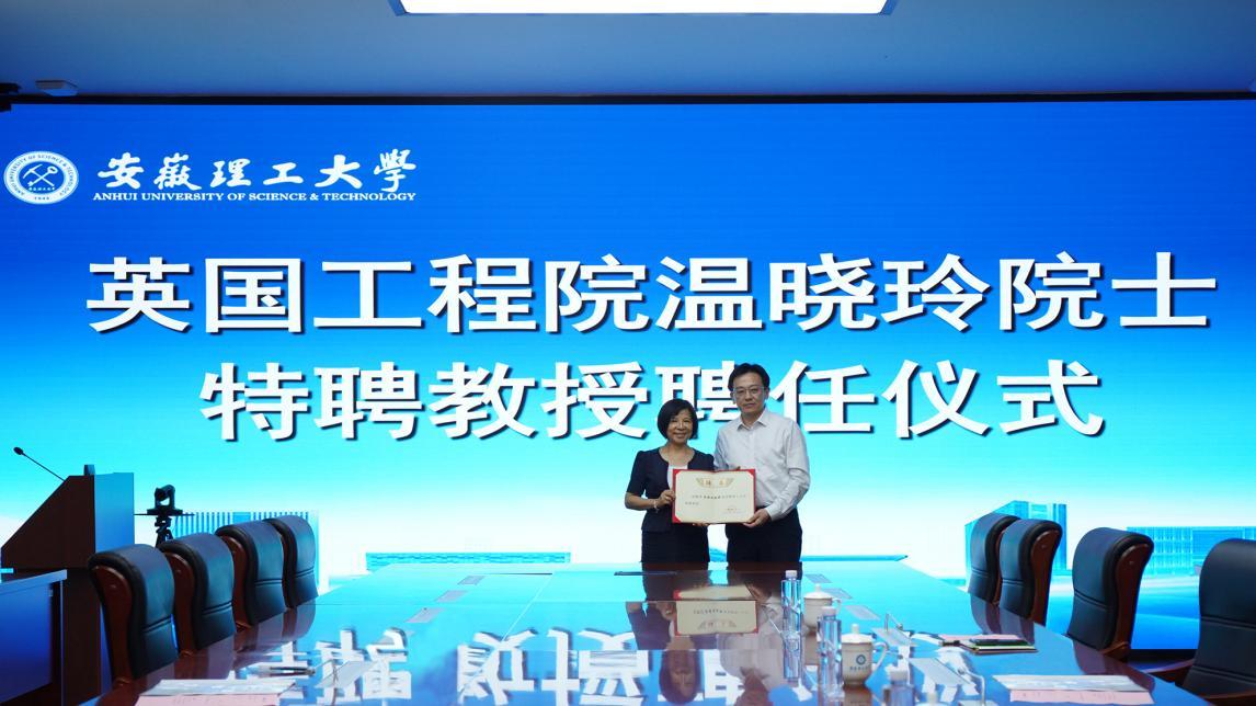 5月16日下午,安徽理工大学在合肥校区产教融合楼一楼会议室举行聘任仪式,聘请英国皇家工程院院士、萨里大学教授温晓玲担任学校特聘教授。校党委常委、副校长赵光明主持会议并颁发聘书。