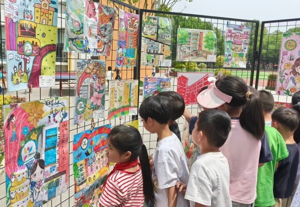 展示期间,展厅外“绘百廿育新 绽童真风采”横幅与校园绿意相映。展厅内,作品有序陈列、光影流转,引得师生驻足欣赏、轻声探讨。惊叹声、快门声与欢声笑语交织,汇成一曲动人的艺术乐章。