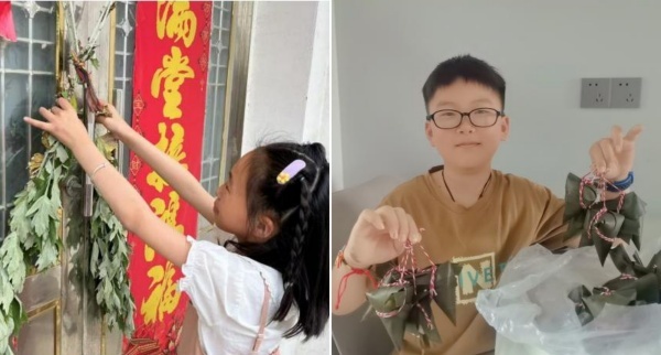 学校发起“端午家庭实践行动”,鼓励学生与家长共同参与传统习俗体验。厨房中,孩子们在长辈指导下,学着裹粽叶、填糯米、系彩绳,笨拙却认真的模样让传统手艺代代相传;门楣前,亲子共同悬挂艾草,在仪式感中感受“艾”与“爱”的传递。