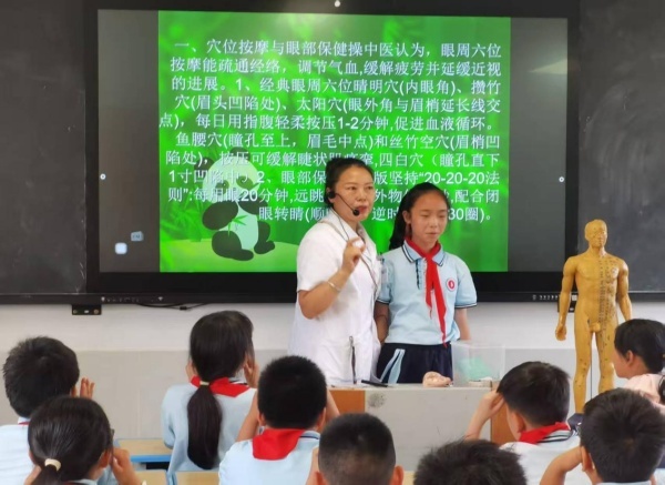 讲座中,专家深入浅出地讲解了眼睛构造、近视成因及预防方法等关键知识,理论与实例相结合,生动形象。同学们积极互动,踊跃提问,现场气氛热烈;眼科医生还现场指导学生如何更规范地做眼保健操,改变了学生平时不良的做操习惯;专家还针对不同年级学生的用眼特点,给出了个性化科学用眼建议,如合理安排用眼时间、如何科学用眼和保持正确读写姿势等。
