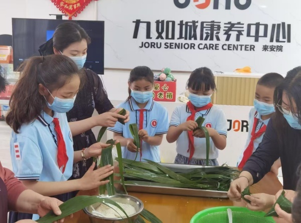 悠悠艾草香,浓浓端午情。为弘扬尊老敬老传统美德,践行劳动教育成果,5月30日上午,来安县实验小学组织党员教师代表、普通教师及参与《制作中草药锤锤棒》劳动课程的学生代表,前往九如城康养中心,开展端午敬老活动。