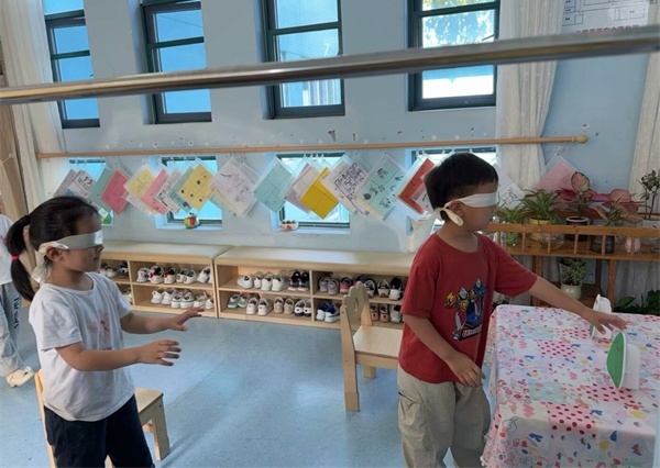 假如我们什么都看不见,会是怎样的一种体验?中班组教师组织幼儿开展了“盲人”大闯关游戏,游戏中孩子的眼睛被遮住,只能摸索着前行,小心翼翼地行走。孩子们遮住了自己的眼睛,在游戏中亲身体验一回盲人,真实地体验看不到的感觉,切实感受看不见的烦恼以及眼睛的重要性。