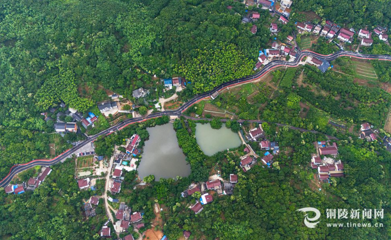 6月2日,航拍的铜陵市铜官区西湖镇农林村,青山、池塘与村落相映成趣。该村面积5.23平方公里,辖12个村民组624户。