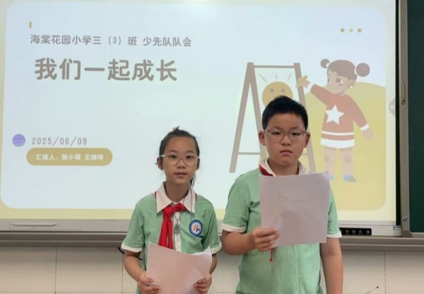 为促进全校师生共同成长,深化“家校社”协同育人理念,6月9日,合肥市长江路第三小学海棠花园校区以“长三小海棠——我们一起成长”为主题,开展室内班队会活动。因当日阴雨天气,活动改在各班教室举行,全体师生通过广播连线参与。