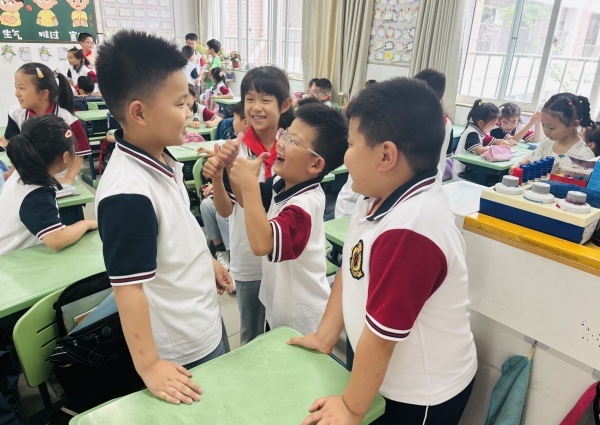 三、四年级的教室里,一场别开生面的“成长伙伴故事会”正在进行。同学们踊跃分享自己与小伙伴之间团结友爱的小故事。有的同学讲述了在自己遇到困难时,伙伴主动伸出援手的经历;有的回忆了和小伙伴一起完成班级任务的快乐时光;还有的分享了同学之间互相鼓励、共同进步的点滴……这些真实而温馨的故事,让学生们深刻体会到,在成长路上,友谊和互助是不可或缺的力量。