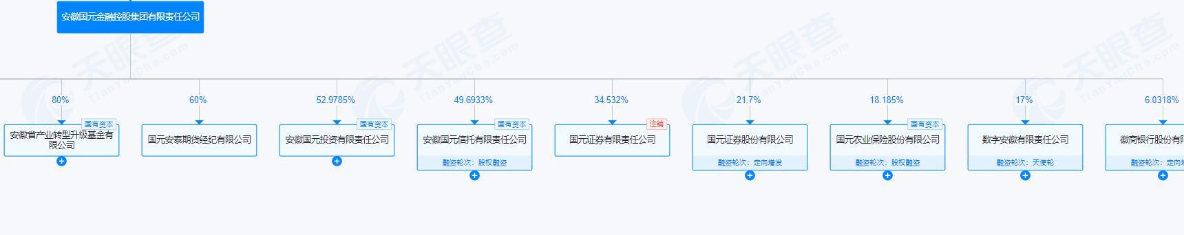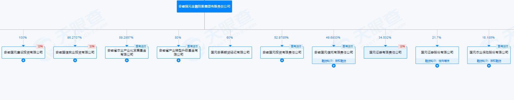 国元金控官网显示,2000年12月30日,由安徽省国际信托投资公司(1981年成立)和安徽省信托投资公司(1991年成立)合并重组的安徽国元控股(集团)有限责任公司获批成立,2018年7月更名为安徽国元金融控股集团有限责任公司(以下简称“国元金控”或“国元”),现注册资本60亿元人民币。