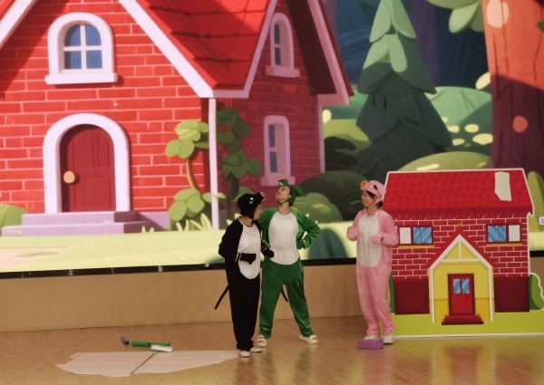 本次大赛由庐阳区教育体育局主办,合肥市刘双宁教育名师工作室与合肥市第四十五中学固镇路校区联合承办,旨在提升音乐教师教学水平,探索学科融合,构建趣味课堂。学校音乐组教师积极响应,全员参与,选定经典童话题材《三只小猪》,以教材音乐作品为蓝本,开启了一场充满创意与童趣的情景剧创作之旅。