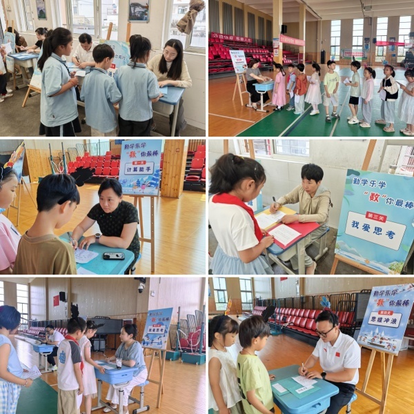 测评现场设置了“朗读我最棒”“字词小博士”“背诵大比拼”“我是语言家”“计算能手”“火眼金睛”“我爱思考”“思维冲浪”八个趣味关卡。孩子们手持闯关卡,在轻松愉快的氛围中完成知识的实践应用。例如“思维冲浪”通过模拟购物计算价格,“我是语言家”鼓励他们看图编故事,锻炼表达能力。