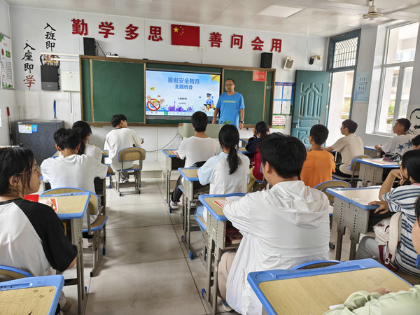 在主题班会上,各班级班主任围绕“预防溺水、交通安全、防诈骗、自然灾害、消防安全、上网安全、居家安全、饮食安全、心理健康教育”等九个方面,结合近期发生的一个个真实案例,给班级同学作了安全知识分享,叮嘱他们在假期一定要将自身安全放在第一位。