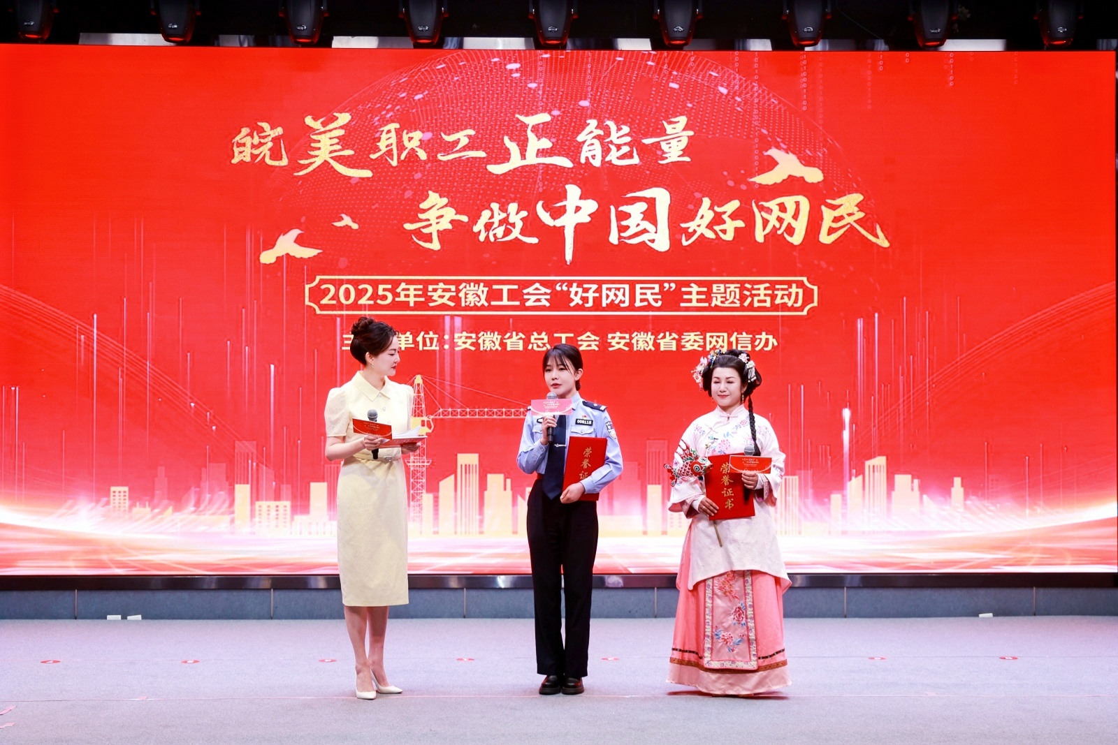 随着“咱们工人有力量!”的嘹亮歌声,活动在掌声和歌声中落幕。2025年安徽工会“好网民”主题活动将广泛开展网络正能量歌曲、微短剧、动漫作品、摄影作品、诵读作品、职工网络达人账号、优秀网评作品、工会新媒体账号、AI 应用案例、普惠项目十大子项目征集。从车间到云端,从劳动现场到网络直播间,安徽职工正以“好网民”的身份,在数字化浪潮中书写着新的文明篇章。让“皖”美职工正能量在网络空间激扬,为现代化美好安徽建设注入澎湃动能!(王晓骞)