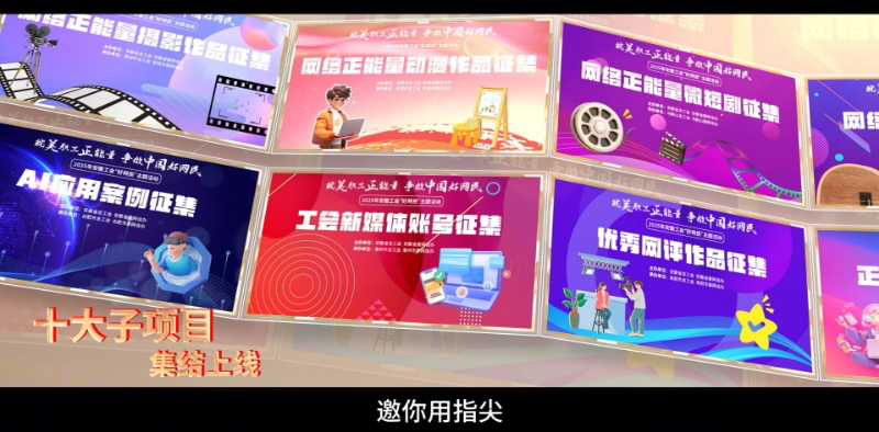 “数字浪潮,奔腾不息;九载耕耘,网聚力量。”大屏幕上,1000余万职工参与、6万余件正能量作品、2000余项全国奖项等数据次第闪现,见证着活动从初创到成熟的蜕变。