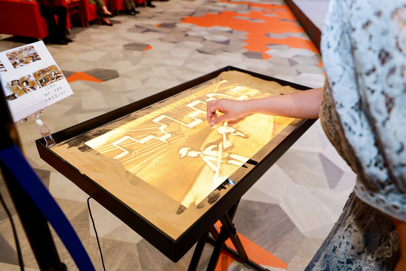“每一瓶饮水都传递关怀与问候,每一声问候都饱含浓浓的爱意……”活动现场,一幅幅展现户外劳动者辛勤劳动的沙画,一声声饱含深情的诵读,生动展示了工会组织“一瓶水·传递爱”的暖心画面。