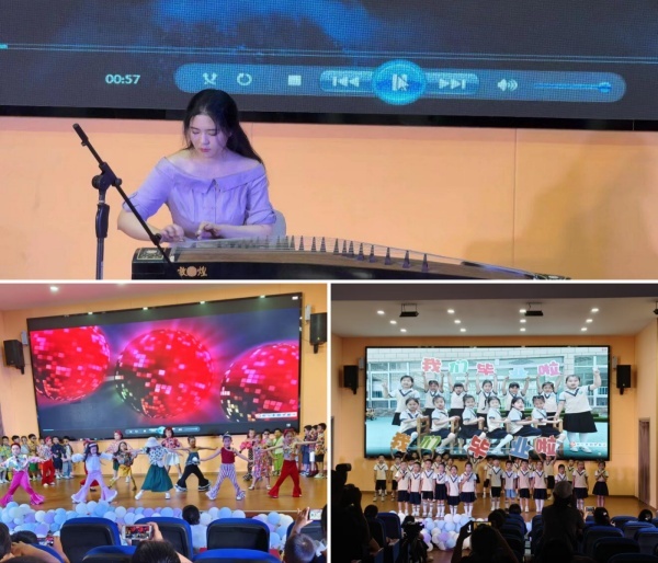 现场节目精彩纷呈,园长、家长和毕业生精彩致辞,歌舞表演赢得阵阵掌声,其中毕业生张芝晗用一场别开生面的古筝演奏,为七一献上了一份独特的礼物,一曲磅礴热烈的《春到拉萨》,在她的指尖缓缓流淌,奏响了对党的深情礼赞,也展现出新时代青年昂扬向上的精神风貌,最后全场合唱《水幼的温暖时光》将气氛推向高潮。