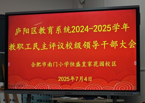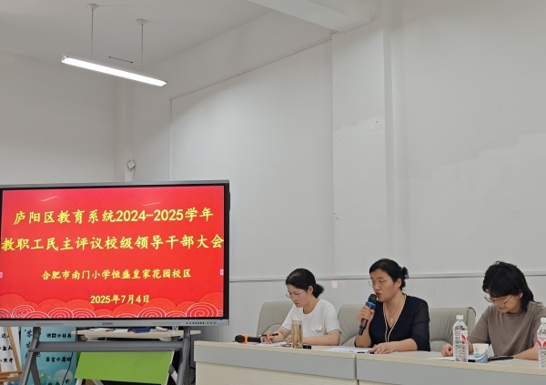 为了提高干部队伍整体素质,充分调动广大教职工的工作积极性,努力做到科学治校和民主治校,4日下午,南小恒盛校区党总支书记童乃梅,校长郑国友,副校长陈祥龙带领全体教师在三楼会议室开展了2024—2025年度庐阳区教育系统民主评议校级领导工作。会议由校工会主席万金琴主持,庐阳区教体局工会副主席罗玲玲和组宣科李雪君出席并指导评议工作进行。