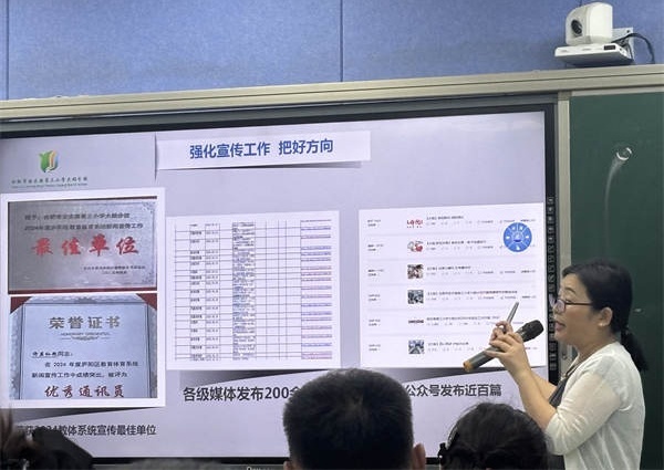 王志芳对过去一年的工作进行了全面总结。她明晰,在学校党建的引领下,教师队伍建设、教学管理、德育育人、安全校园和多方共育等方面均取得了显著成绩。特别是在体育强身砥砺品格方面,学校在全国软式棒垒球比赛中获得了优异成绩,充分展现了学校体育教育的卓越成果。她还特别强调了安全教育的重要性,并展示了学校在急救知识培训、防欺凌培训、防溺水知识宣讲等方面的具体措施。通过这些活动,学校不仅提高了学生的安全意识,还增强了他们的自我保护能力。此外,王志芳还介绍了学校在宣传工作方面的成就,学校在各级媒体上发布了200余篇报道,微信公众号发布近百篇,进一步提升了学校的知名度和社会影响力。