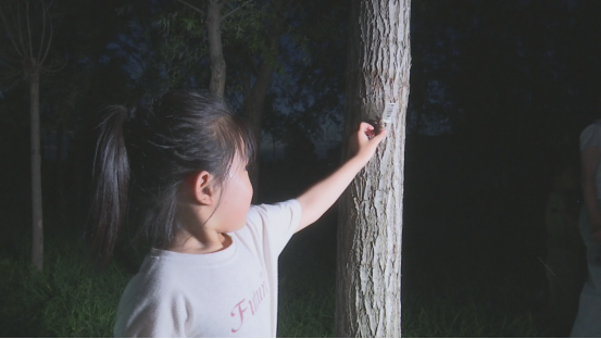 夜幕低垂,西二铺镇涵泽金蝉养殖场的柳树林间,点点灯光摇曳。游客周傲妹正带着孩子俯身寻觅,一只只破土而出的“知了猴”被小心收入瓶中。“带孩子来重温我们小时候的乐趣,看她这么开心,仿佛也拾回了自己的童年。”周傲妹的言语间,洋溢着两代人共享自然野趣的温馨。