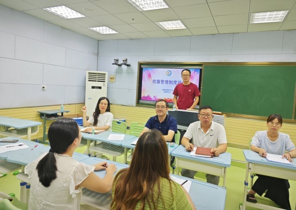 少工委委员李立宣读了《合肥市四河小学校服管理制度》,该制度围绕校服的采购、发放、穿着规范等内容作出了明确要求,旨在通过统一规范的校服管理,培养学生的集体意识和良好行为习惯,同时保障校服质量与学生权益。