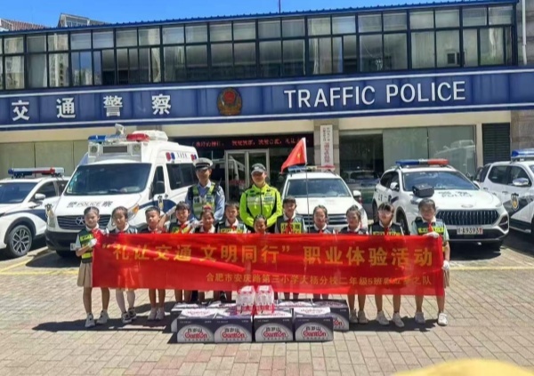 为提升小学生交通安全意识、培养文明出行习惯,7月20日上午,合肥市安庆路第三小学大杨分校“彩虹梦之队”小队走进合肥市公安局交警支队公巡一大队,参与“礼让交通 文明同行”暑期实践活动。