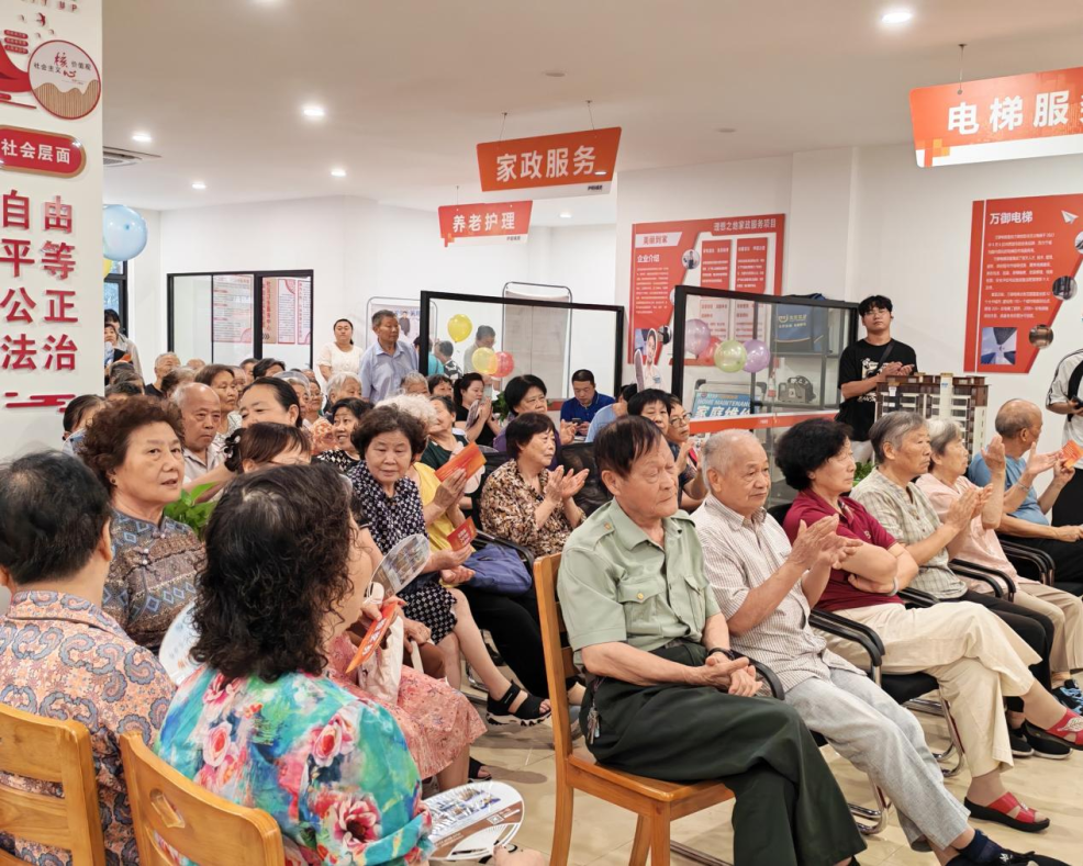 揭牌仪式后,现场精心设置了多个互动体验区,吸引了众多居民踊跃参与。智慧服务区内,工作人员详细演示了线上小程序预约服务、生活物资便捷下单等数字化功能;适老化服务区气氛温馨,向居民免费提供血压血糖检测、健康咨询、康复理疗等体验项目,并特别增设了免费理发服务,让关爱更贴心;便民服务区人气高涨,围绕专业家政清洁优惠、电梯加装全流程咨询、适老化改造评估、房产交易咨询以及粮油食品特惠采购等居民关心的领域,工作人员提供面对面、一对一的专业解答与指导。丰富的体验项目让居民真切感受到家门口服务的便利与温度,真正实现了“服务触手可及”。
