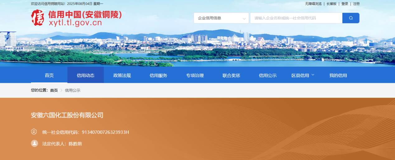 天眼查信息显示,安徽六国化工股份有限公司,成立于2000年,安徽铜都投资集团成员,位于安徽省铜陵市,是一家以从事化学原料和化学制品制造业为主的企业。