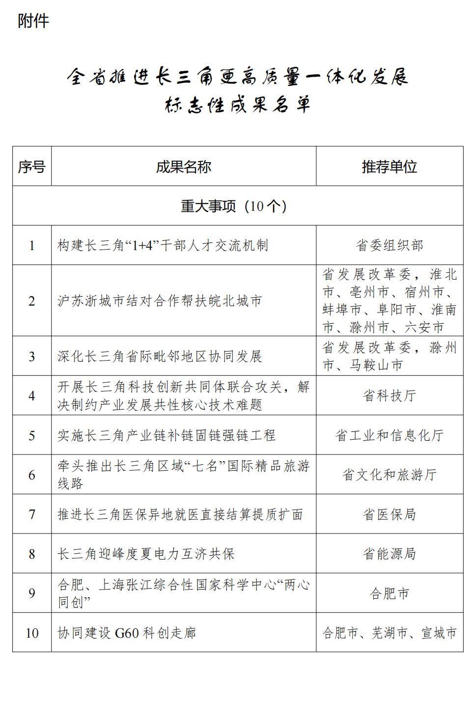 附件:全省推进长三角更高质量一体化发展标志性成果名单.doc