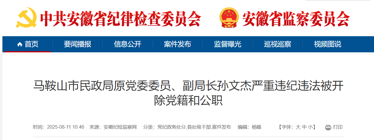 日前,经中共马鞍山市委批准,马鞍山市纪委监委对马鞍山市民政局原党委委员、副局长孙文杰严重违纪违法问题进行了立案审查调查。