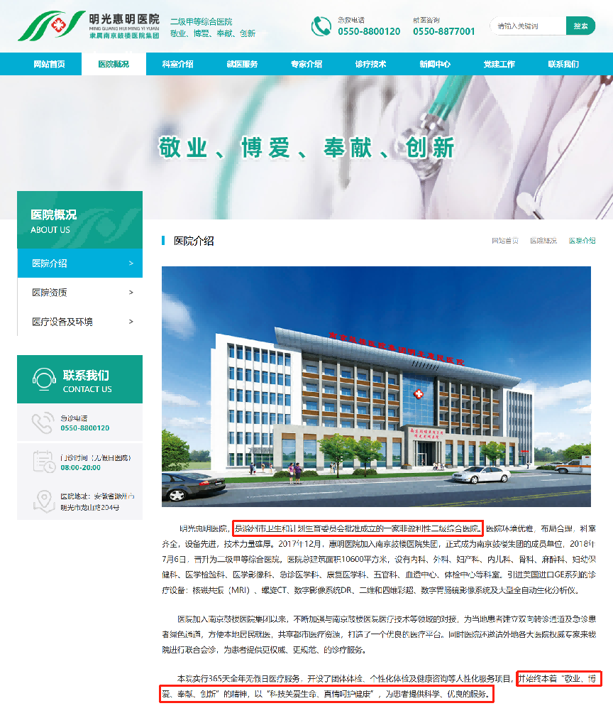 官网信息显示,明光惠明医院是滁州市卫生和计划生育委员会批准成立的一家非盈利性二级综合医院。医院环境优雅,布局合理,科室齐全,设备先进,技术力量雄厚。2017年12月,惠明医院加入南京鼓楼医院集团,正式成为南京鼓楼集团的成员单位,2018年7月6日,晋升为二级甲等综合医院。